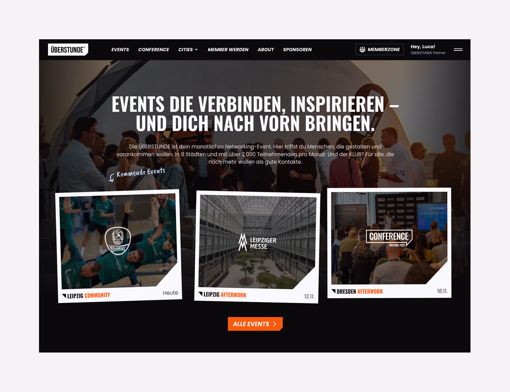 2024 wandte sich die ÜBERSTUNDE an uns. In nur drei Jahren wuchs das Netzwerk-Format auf sieben Städte und tausende Teilnehmer. Doch das Wachstum machte Abläufe komplex, manuelle Prozesse stießen an ihre Grenzen. Zeit für smarte Automatisierung. Das Ergebnis: