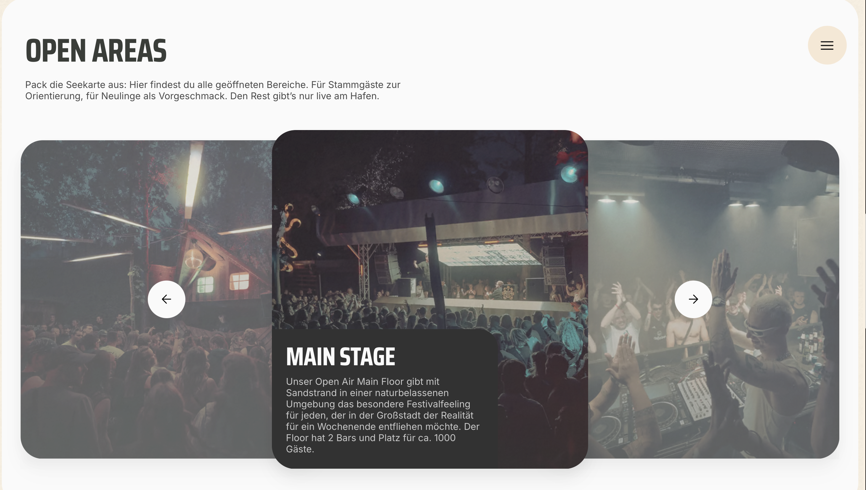 Die gesamte Plattform ist mobile-first gedacht – von der Startseite bis zum Checkout. Nutzer finden in wenigen Sekunden das nächste Festival, sehen alle relevanten Infos auf einen Blick und können direkt Tickets kaufen, teilen oder speichern. Kein Schnickschnack, nur ein durchgängig konsistentes Erlebnis, das zur Szene und zum Anspruch der Location passt.